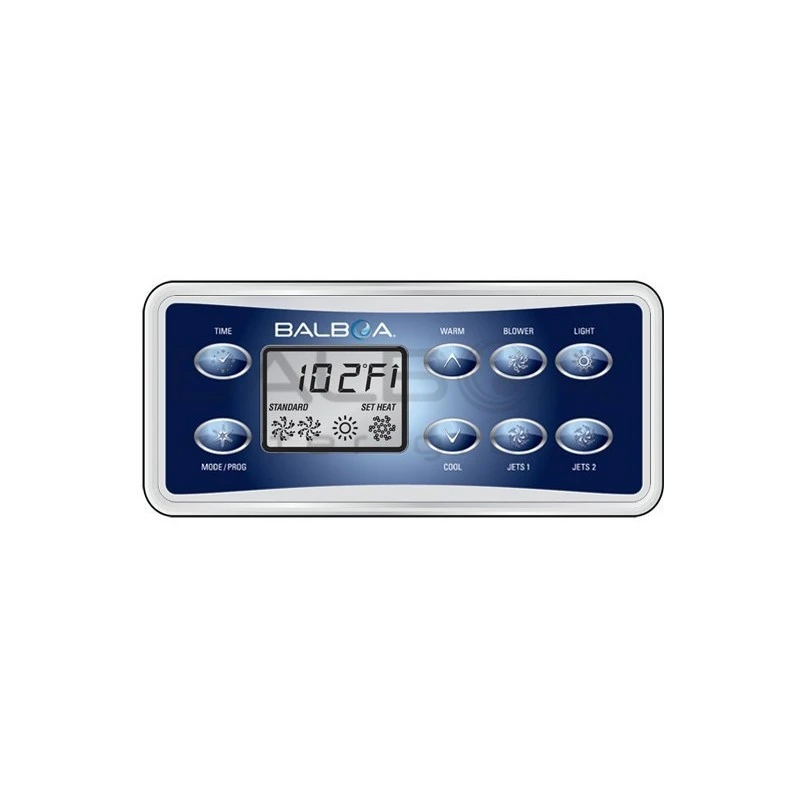 | Configuratie van de knop: | TIME, MODE, WARM, COOL, BLOWER, JETS 1, licht en JETS 2. |
