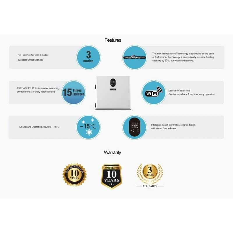 De nieuwe TurboSilence-technologie is geoptimaliseerd op basis van de Full-inverter-technologie, het hele regelsysteem en de bijbehorende componenten zijn geüpgraded, het kan de verwarmingscapaciteit onmiddellijk met 20% verhogen, maar met een stille werking.