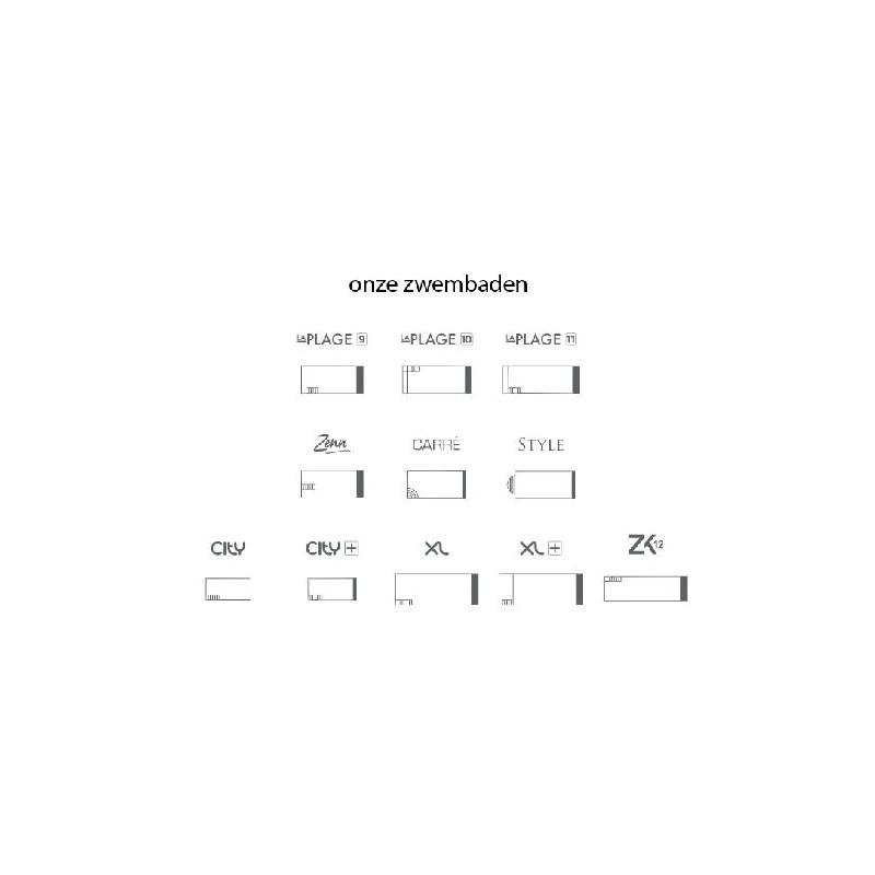 Vorm: rechthoekig zwembad voorzien van een onderwaterbank en een trap met 3 treden.