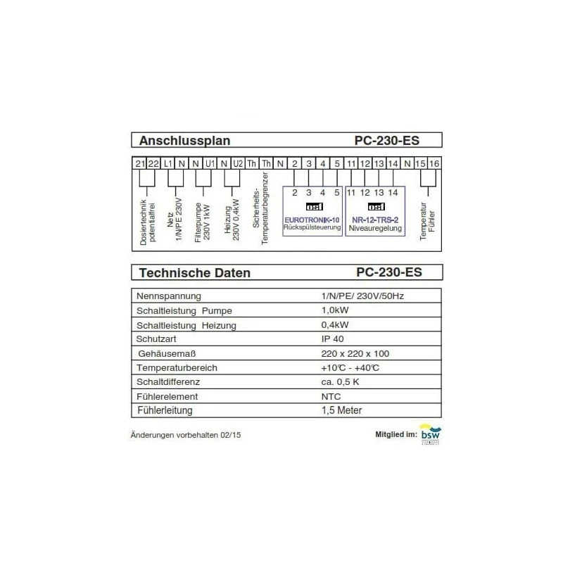 Het zijn Indicatielampjes voor de Filterpomp en verwarming aanwezig. De elektronische temperatuurregeling regelt de watertemperatuur exact van het zwembad.