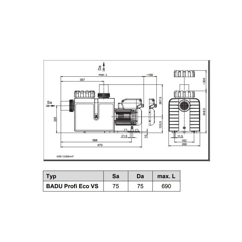 De Badu Profi Eco VS is een blokpomp met een geïntegreerde filtermand en