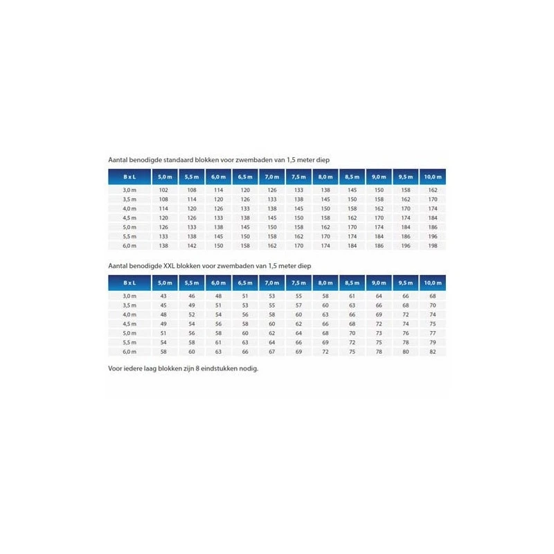- Volume beton om 1  bouwblok te vullen 500 x 250 x 1.250 is ±0,083m³ (Circa 0,133m³ beton per 1m² wall)